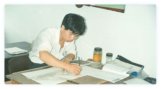 1990年,年輕的李海周懷揣著夢(mèng)想,只身來到深圳拼搏。期間,有幸遇到了他的第一位模具師傅——來自北京的老工程師江祥豐。