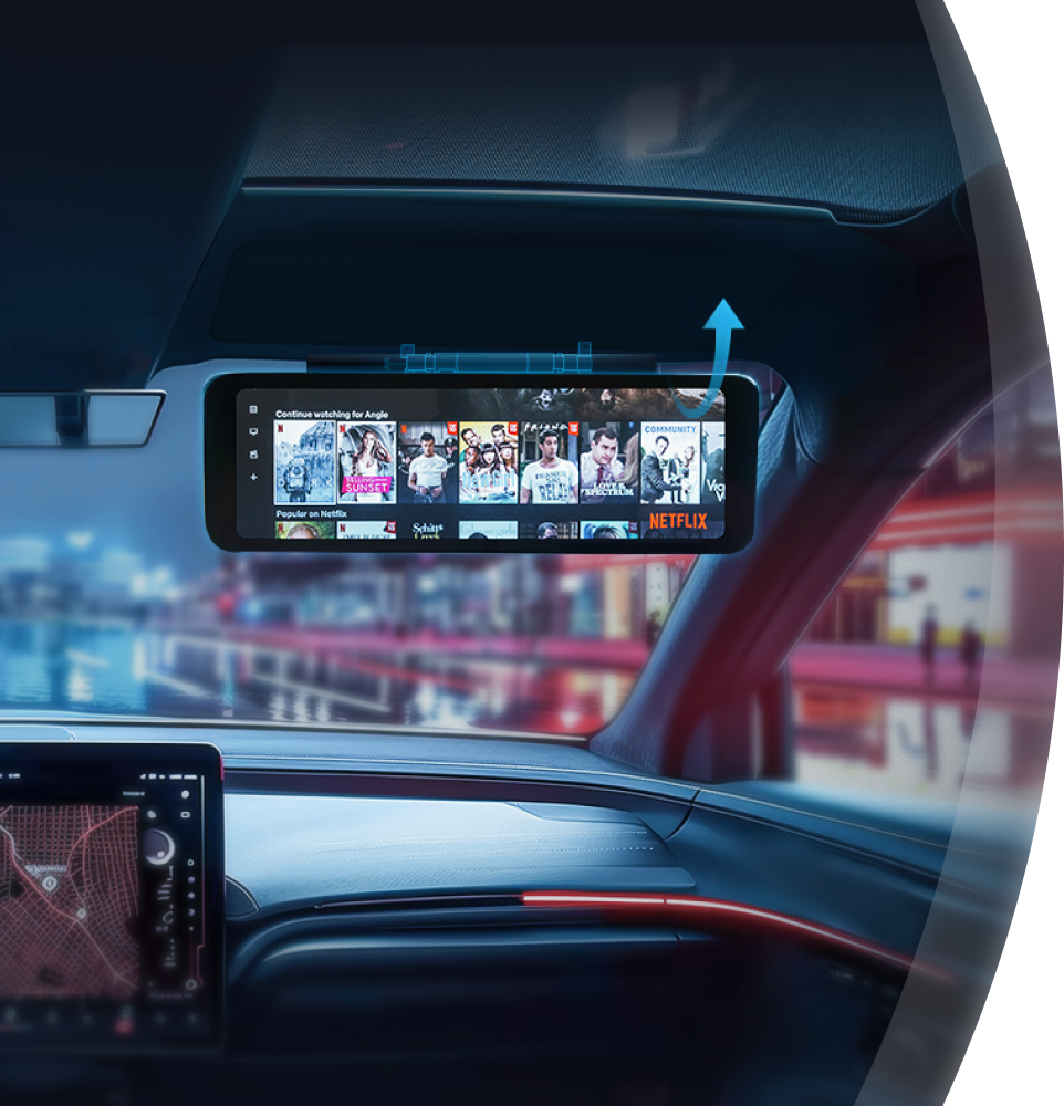 兆威后排吸頂屏,通過產(chǎn)品殼體帶動(dòng)屏幕組件旋轉(zhuǎn),旋轉(zhuǎn)角度存在多個(gè)檔位,使用者可調(diào)整屏幕角度,同時(shí)還具備限位功能,遇到顛簸路況也能保持穩(wěn)定。